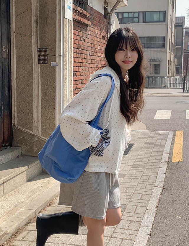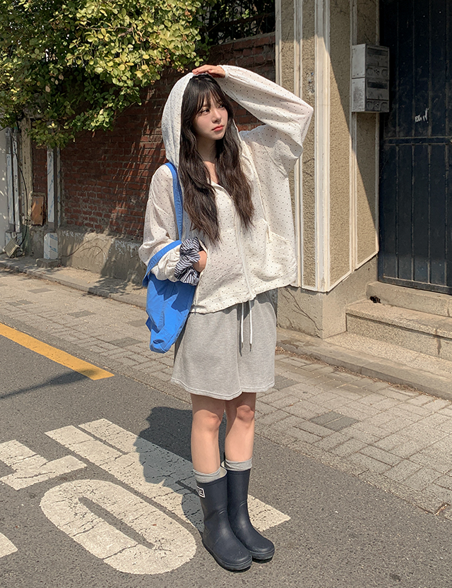 러비테 loose fit Dot Freel Linen Hood Zip up 87036