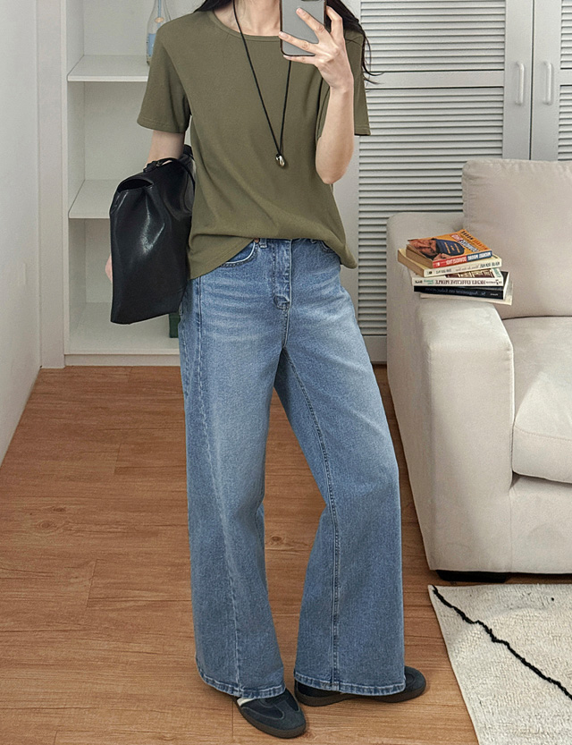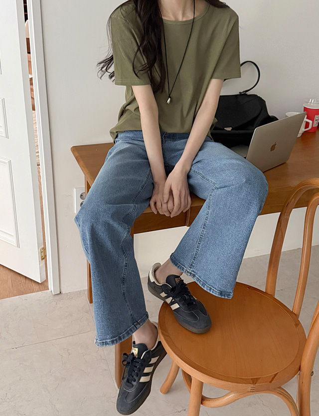 가니트 속밴딩 Spandex 절개 Denim Pants 87067
