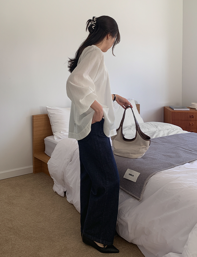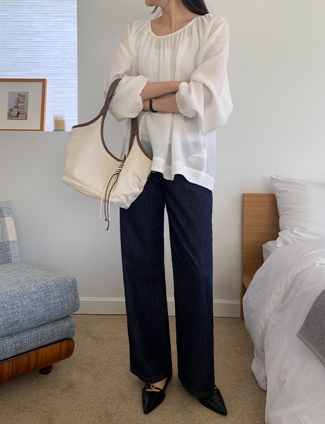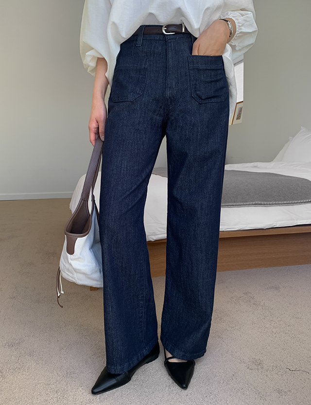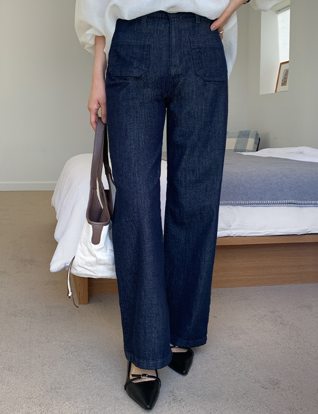 체이크 논페이드 포켓 히든밴딩 Wide Denim Pants 87184