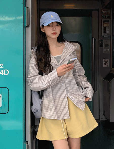 카와비 loose fit Check Hood Shirt 87032