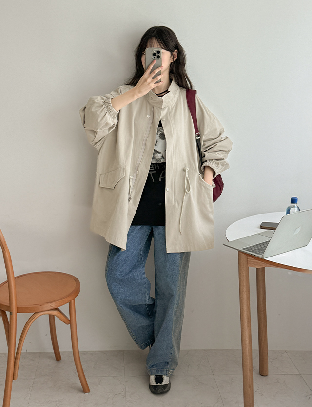 베빈 string field jacket loose fit Jumper 87103