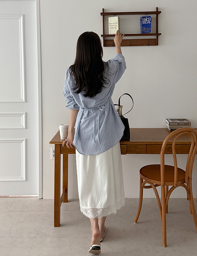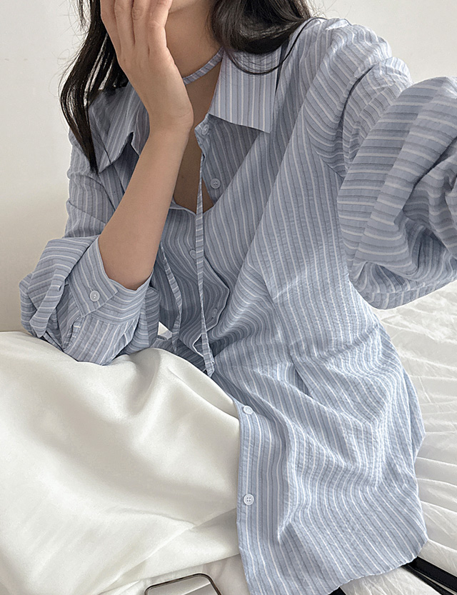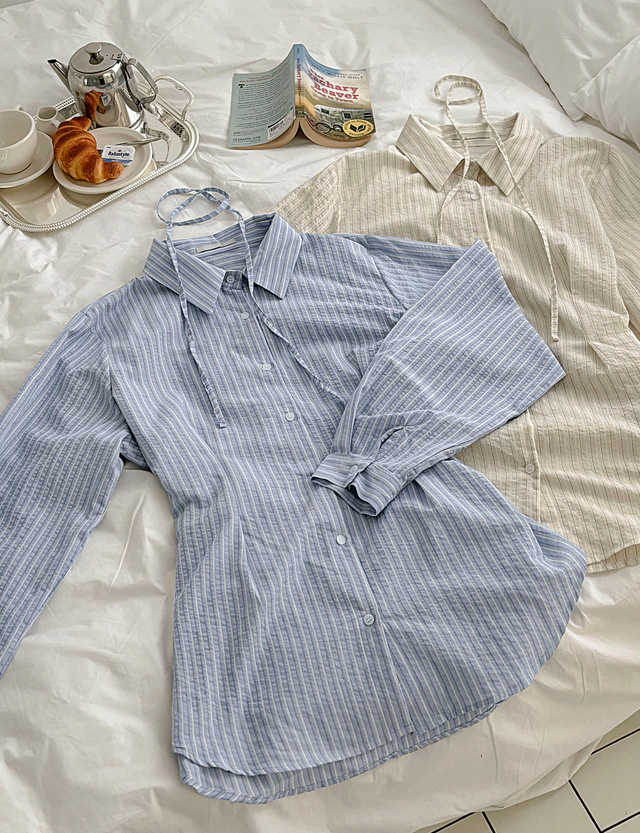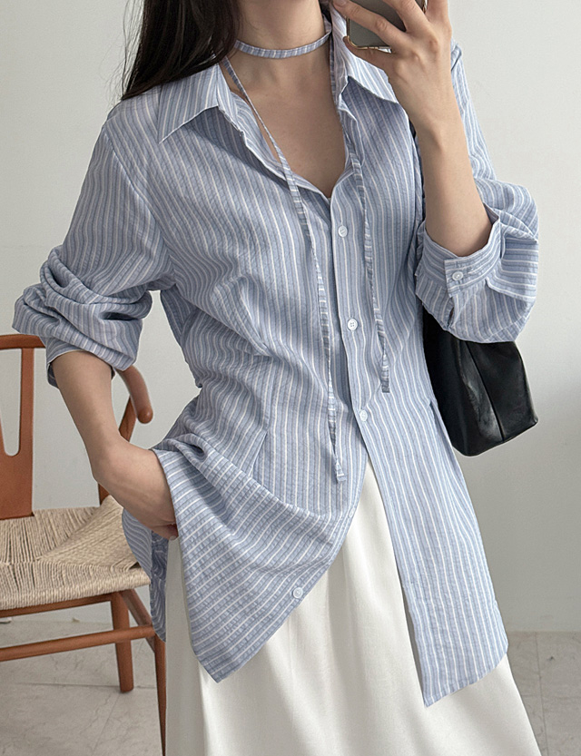 린느 허리 Strap 핀턱 Stripe Shirt 87232