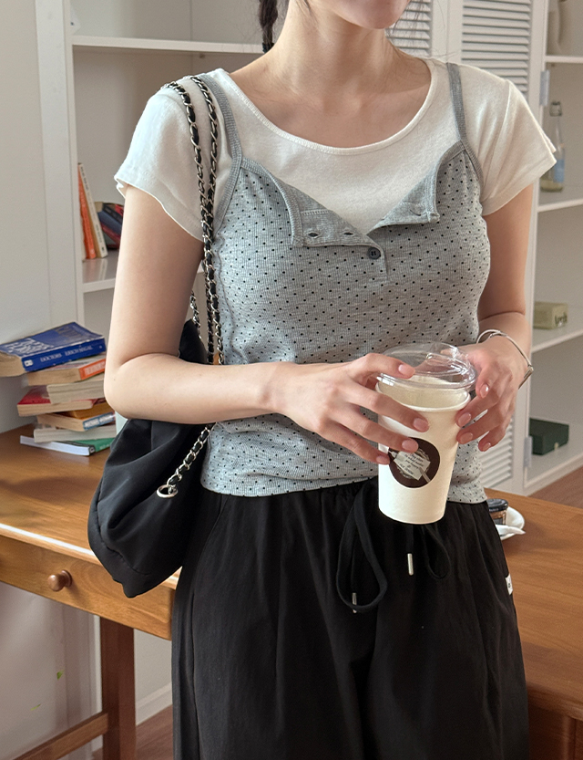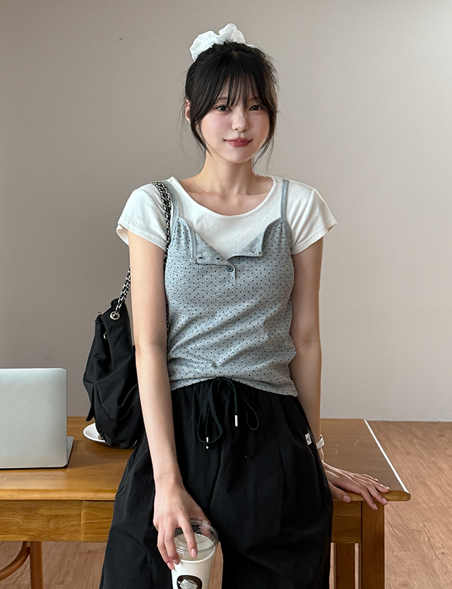 플러팅 Dot Spandex Sleeveless shirts 87349