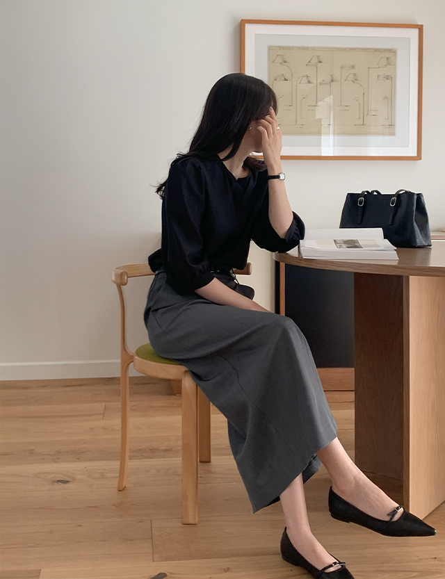 시어트 뒷밴딩 H line long Skirt 87187