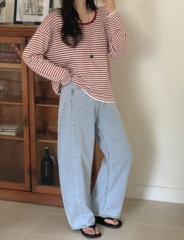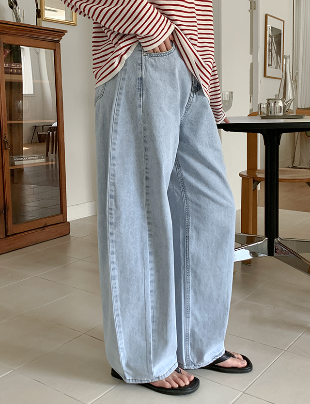 일리브 커브드 절개 Wide Denim Pants 87259