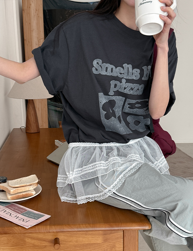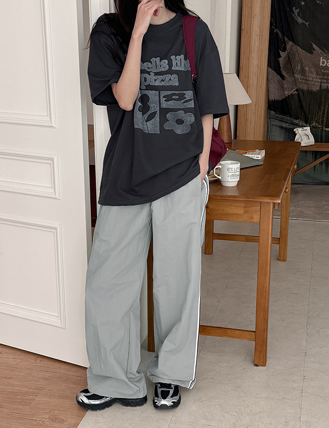 모엔디 loose fit Flower Printing Short-sleeve T-shirt 87377