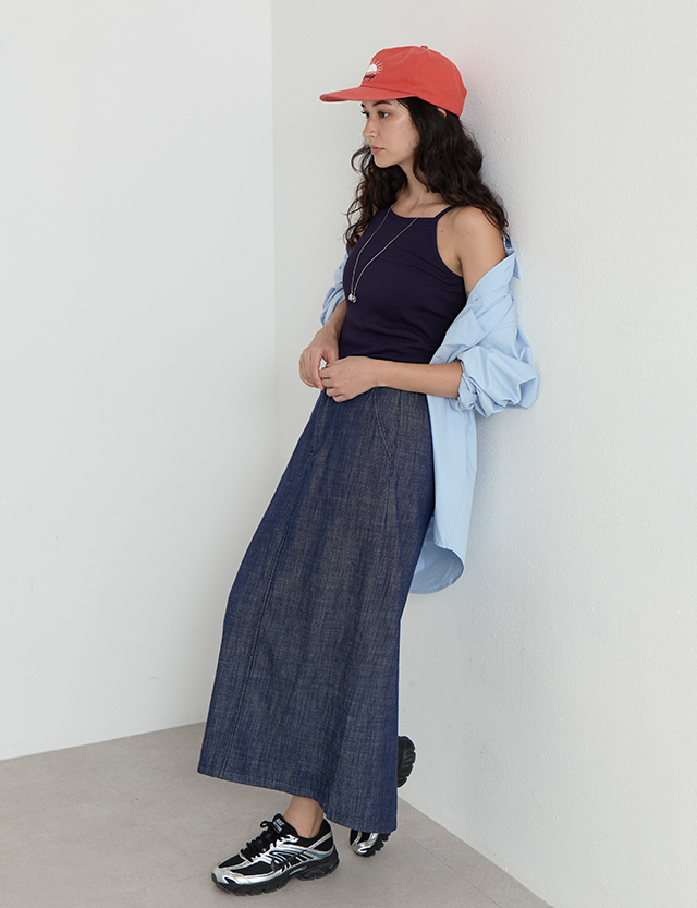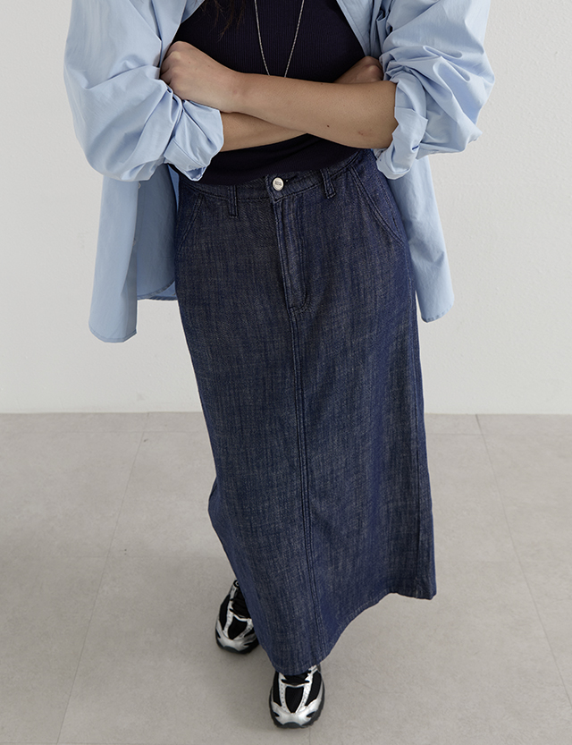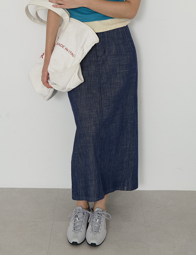 [논페이드] 나스이 뒷밴딩 Denim long Skirt 87412