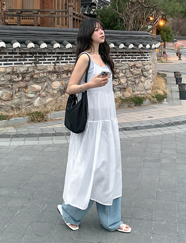 봄타나봐 See-through look layered 뷔스티에 long One Piece 87404
