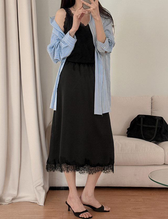 글리즈 Banding Race Satin 미디 Skirt 87296
