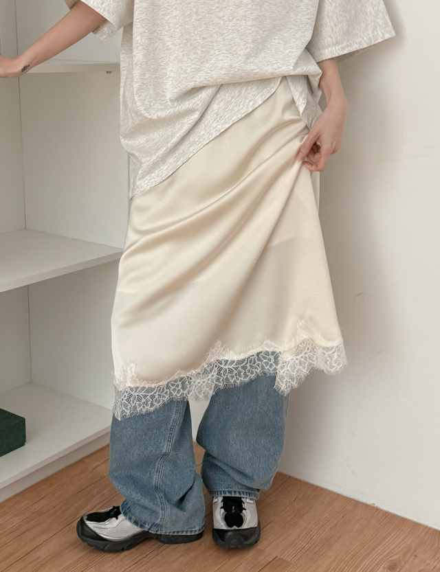 글리즈 Banding Race Satin 미디 Skirt 87296