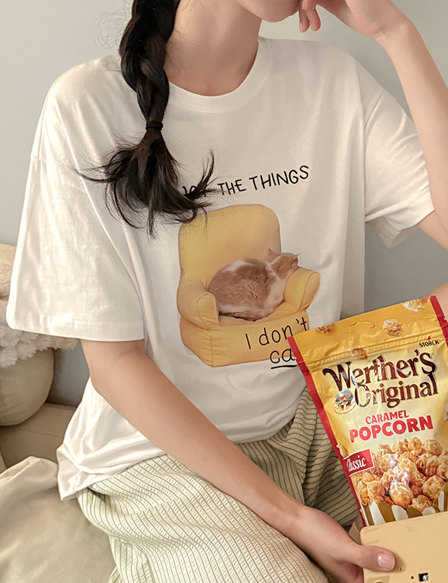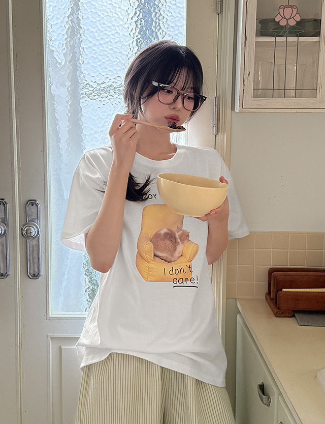 치어로 loose fit Round Printing Short-sleeve T-shirt 87387