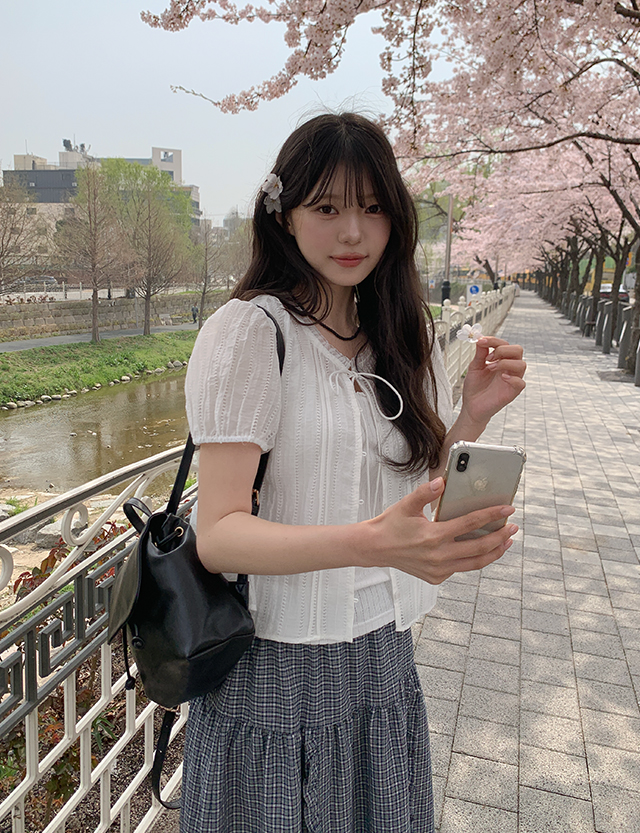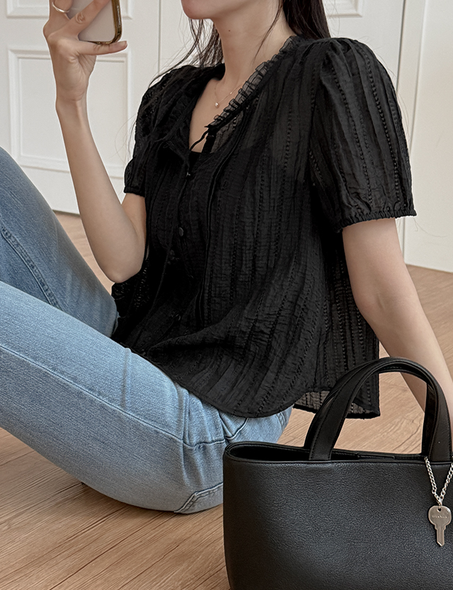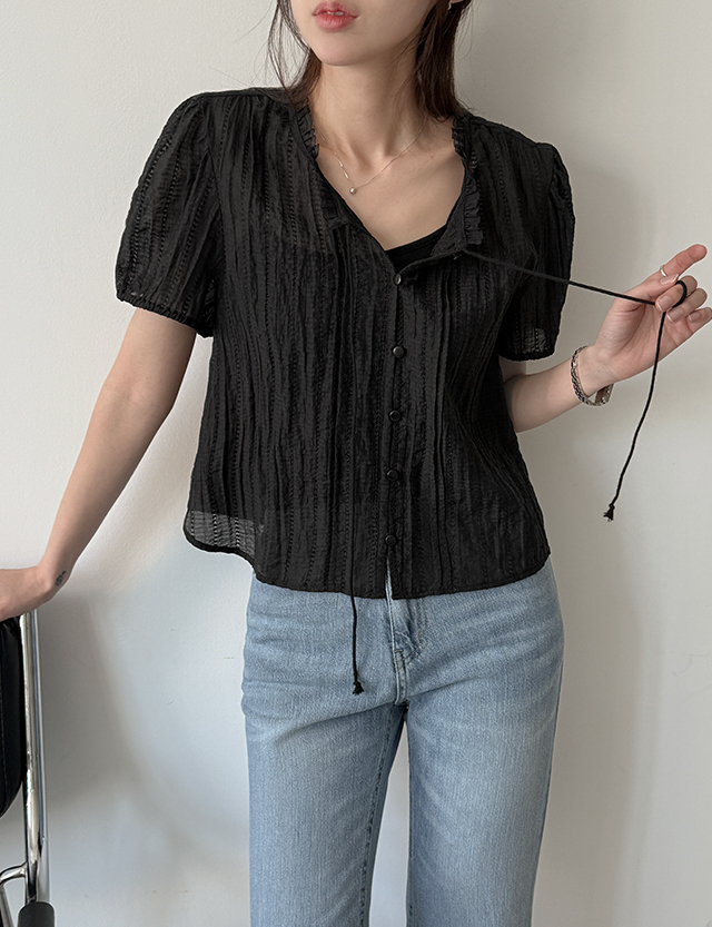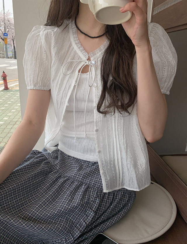 아스잉 See-through look 셔링 cardigan 87470