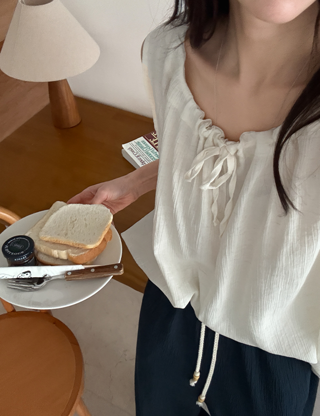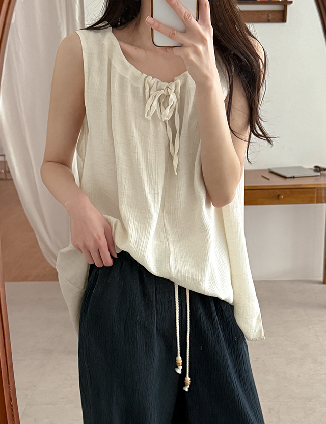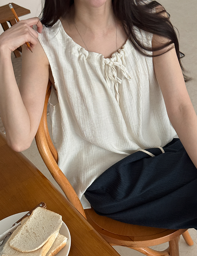 온니드 셔링 bowknot Sleeveless shirts Blouse 87363
