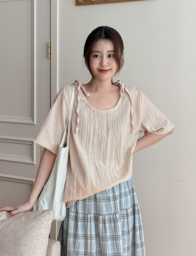 엔젤링 loose fit 넥 string Short-sleeve T-shirt 87438