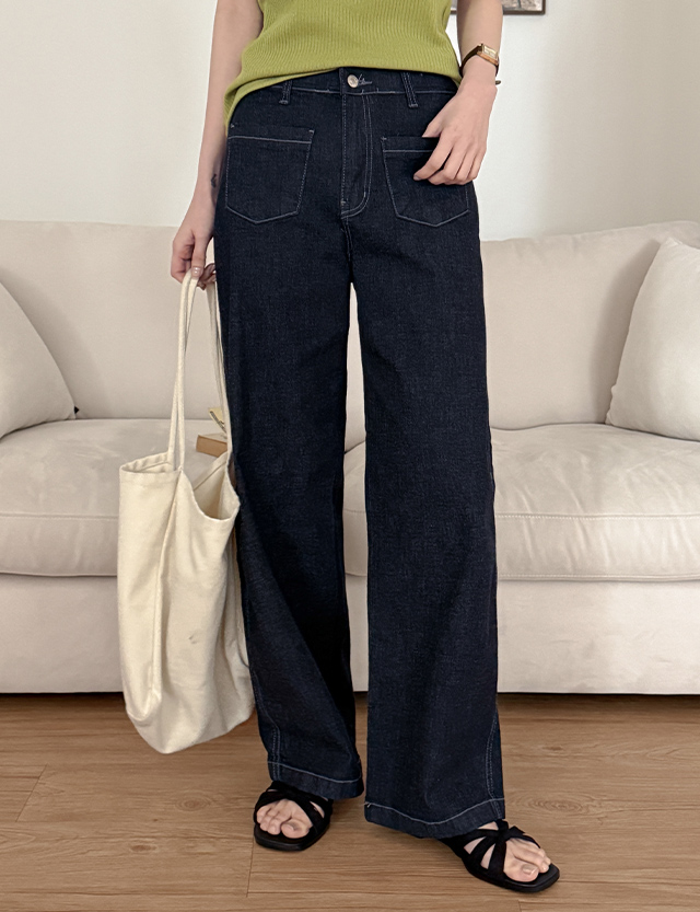 [3XL까지] 언텟 아웃포켓 속밴딩 세미와이드 쿨 Denim Pants 87546