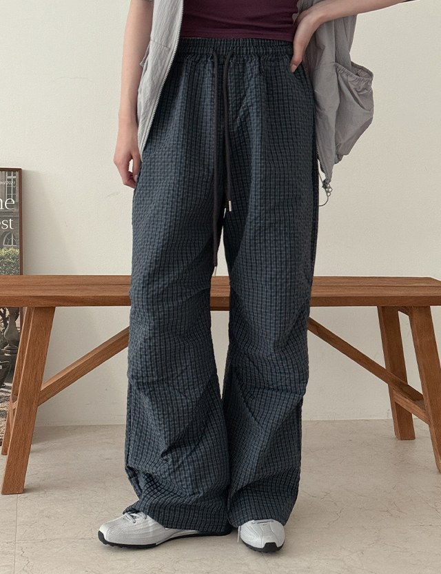 링퀴 Banding Check Wide 바스락 Pants 87499