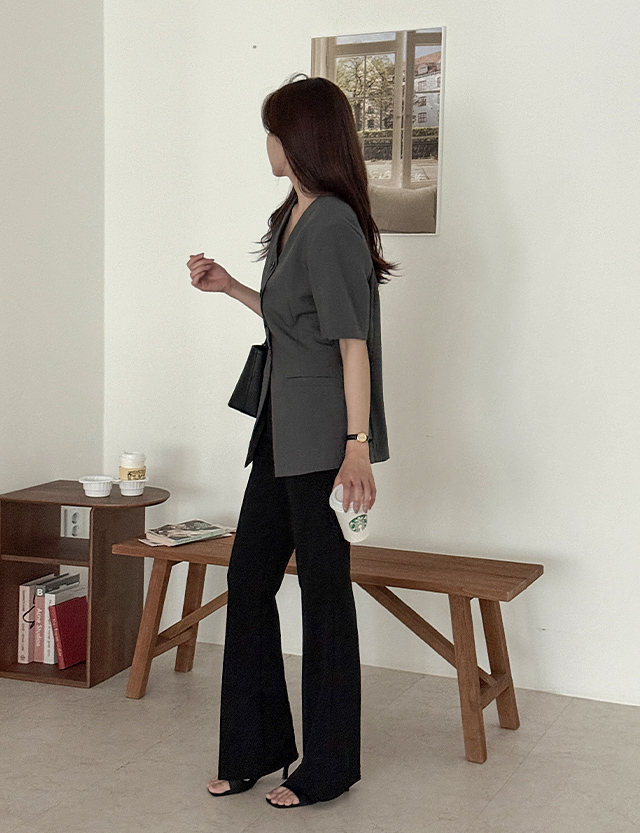 [2가지기장] 뮤에브 속밴딩 Spandex Slim Boot cut Slacks 87584