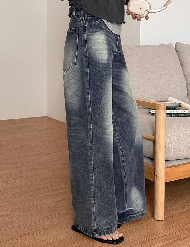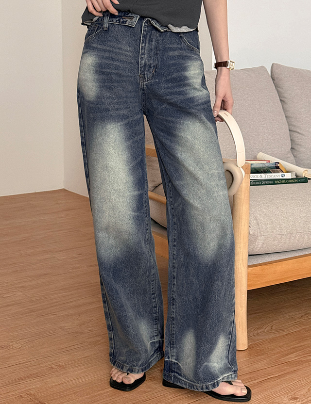 [4XL까지] 폴드 unique Wide Denim Pants 87553