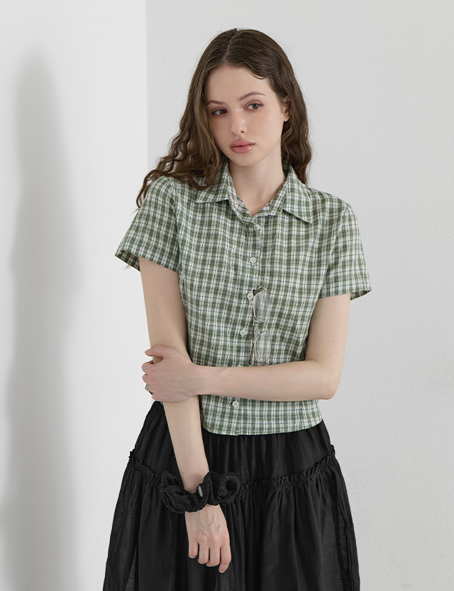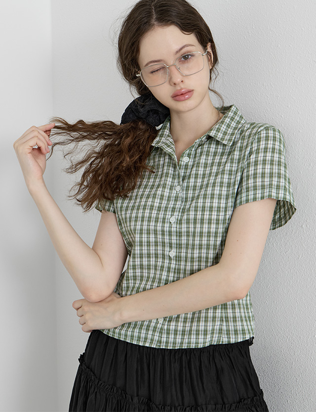 리드니 Check line Crop Short-sleeve Shirt 87714