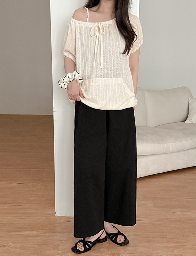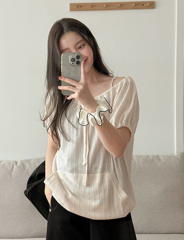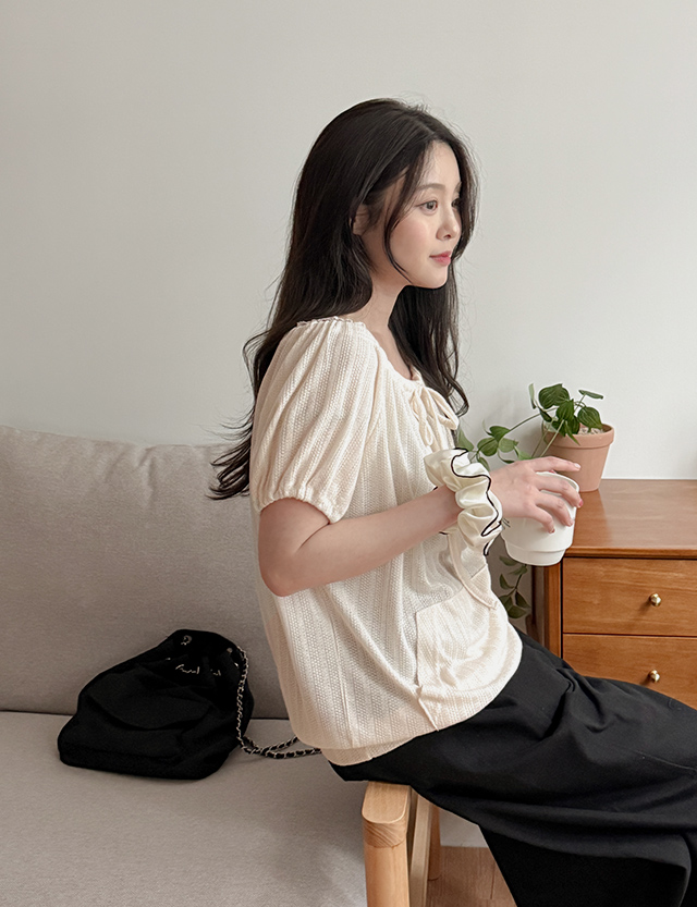 츄로 넥 string Puff Short-sleeve T-shirt 87623