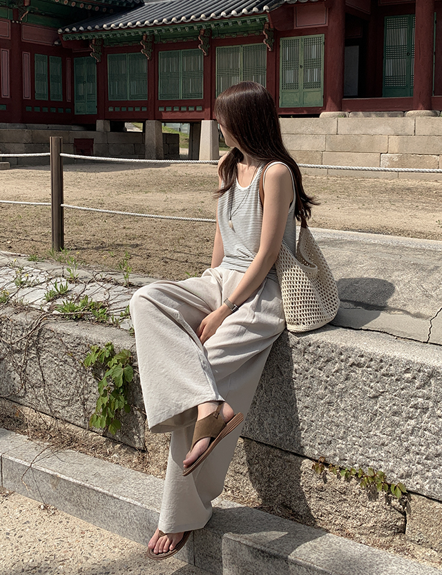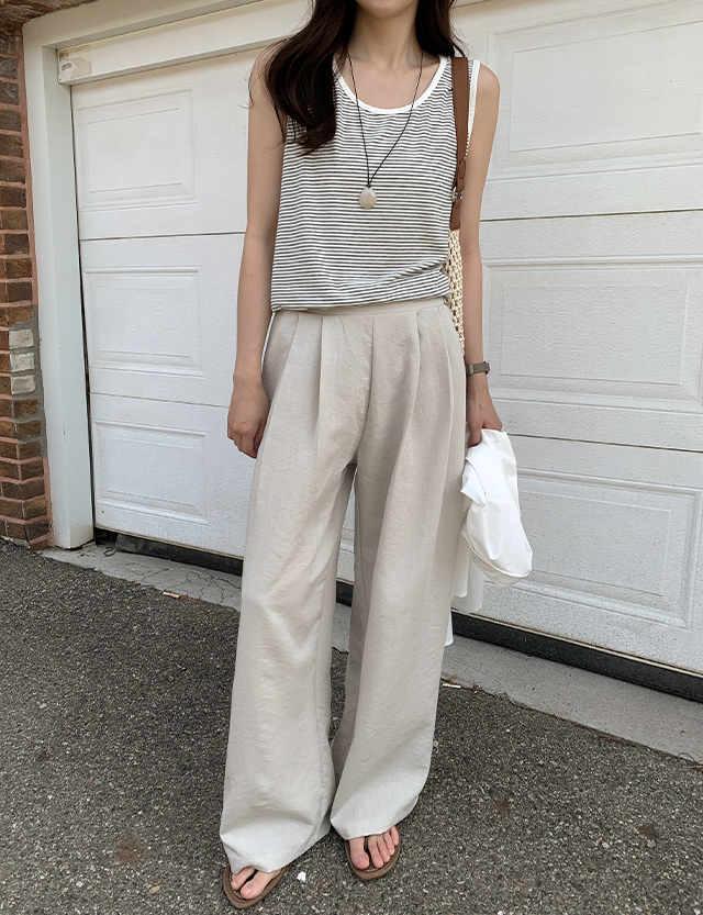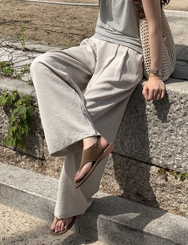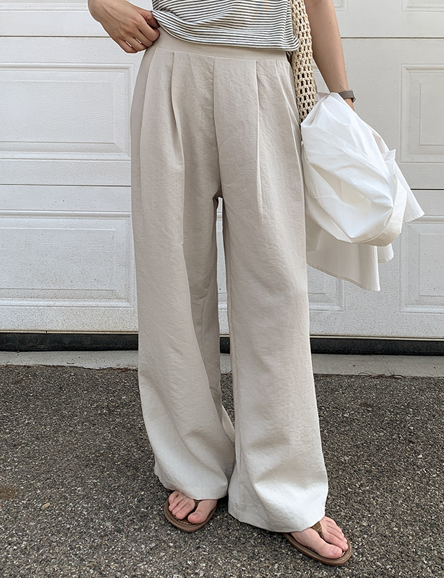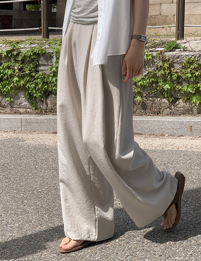 프루아 뒷밴딩 Wide 핀턱 Linen Slacks 87729