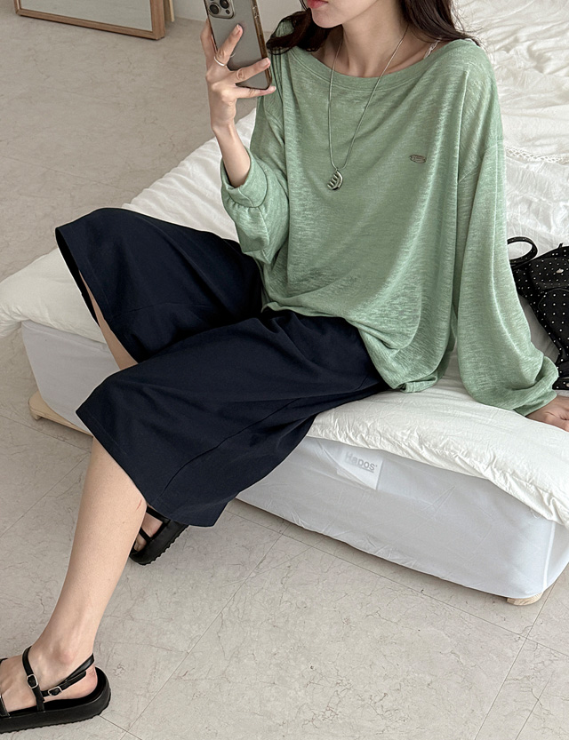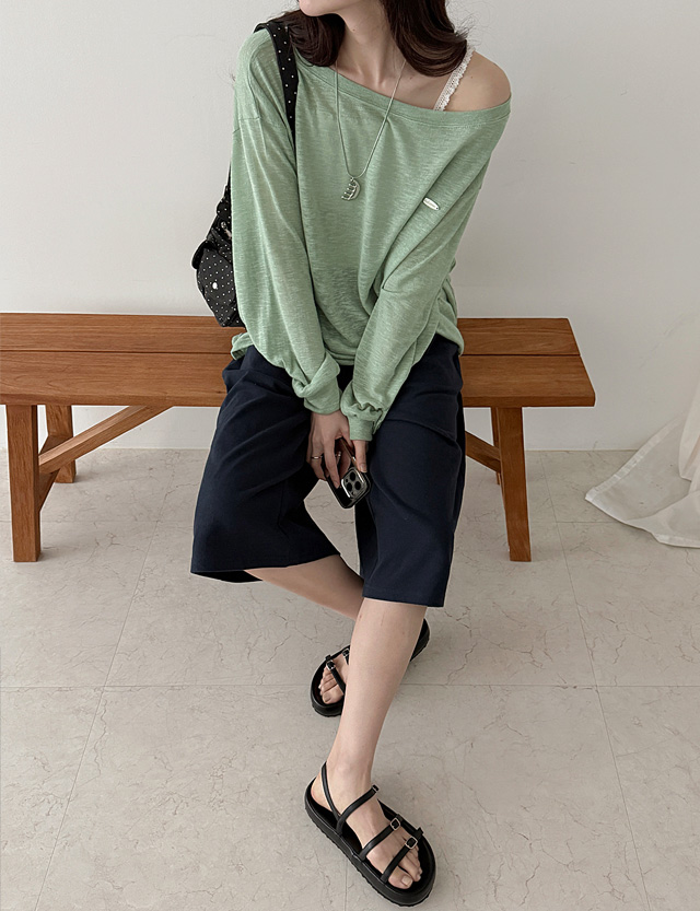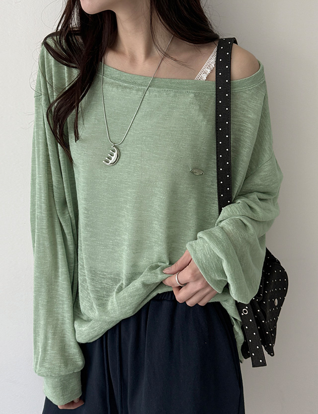 여리쉐입 보트넥 실버참 Long-sleeve Knit T-shirt 87566