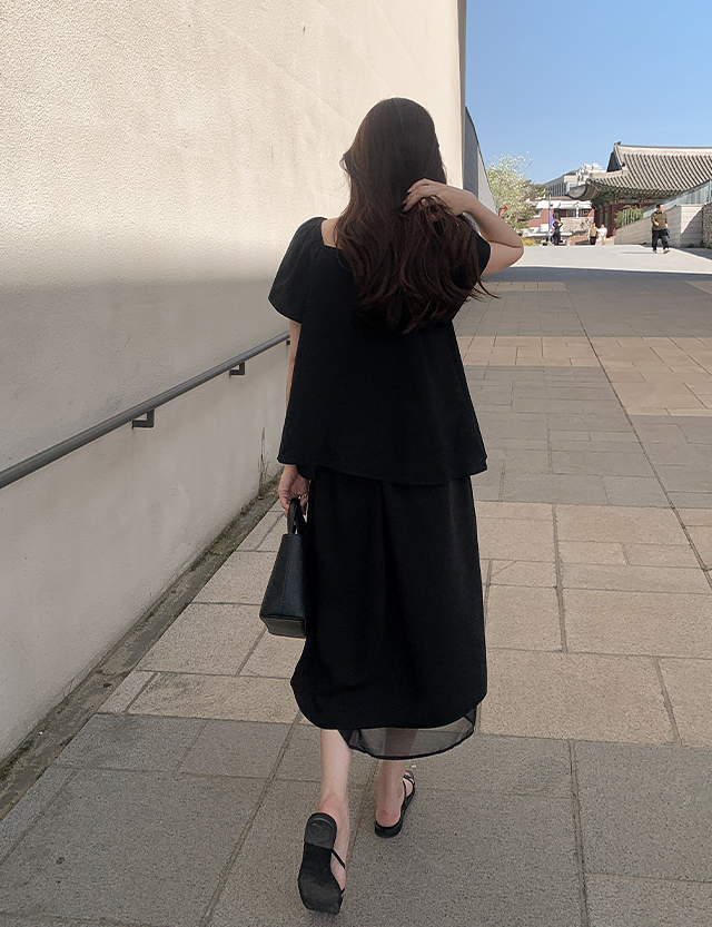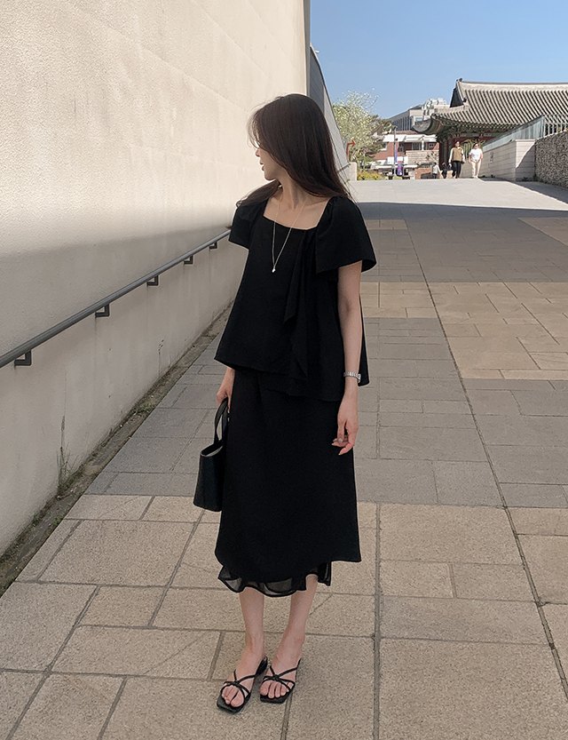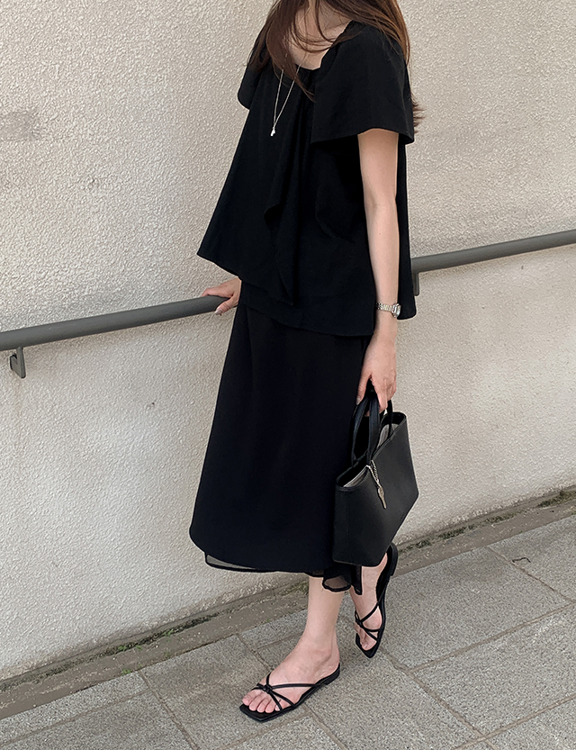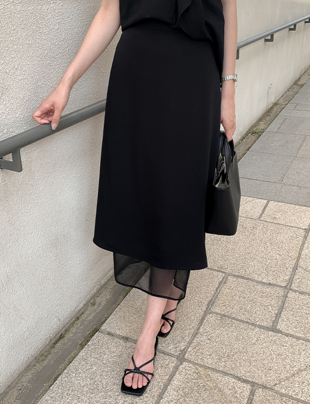 오브딘 뒷밴딩 Chiffon layered long Skirt 87730